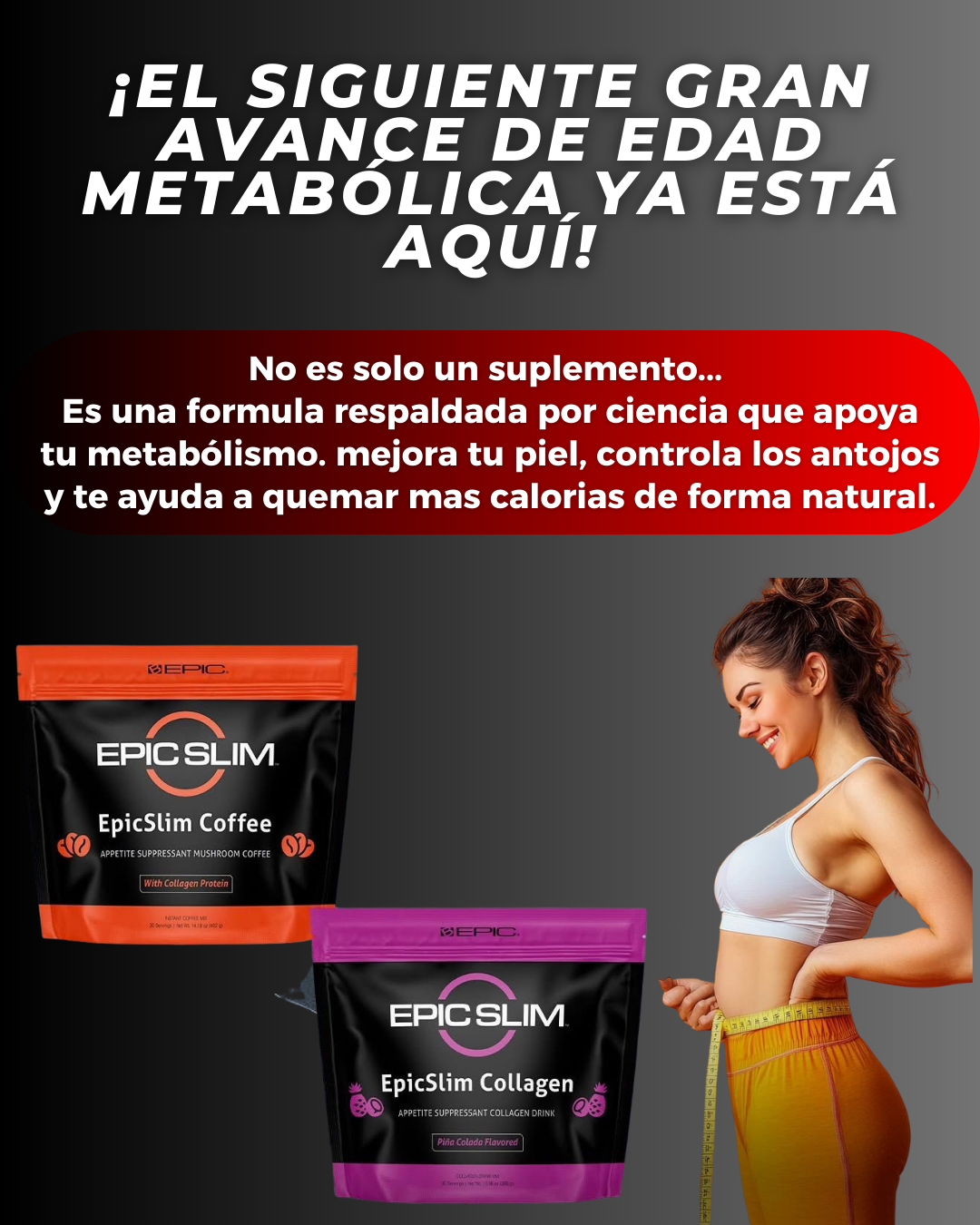 EpicSlim es una formula inteligente que combina berberina, caloriBurn, colágeno y adaptógenos, para ayudarte a recuperar el control sobre tu cuerpo y tu energía.